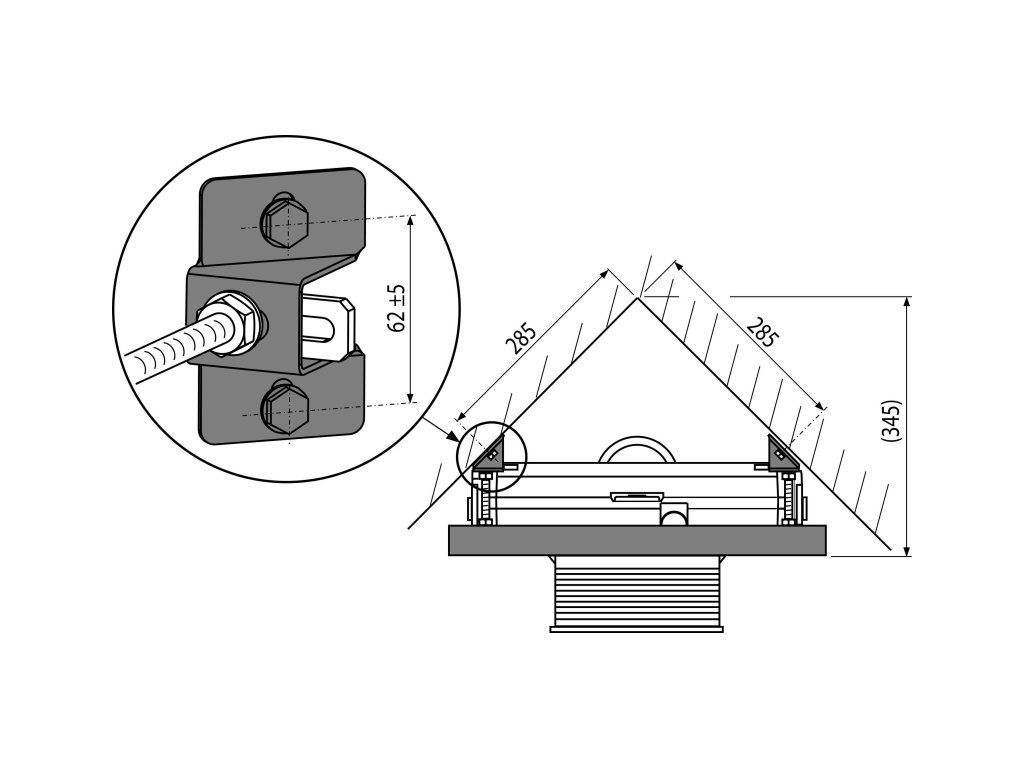 Fixační set: vrut Ø8×60 – 4 ks, hmoždinka Ø12 – 4 ks, matice M10 – 4 ks, podložka Ø8 – 4 ks