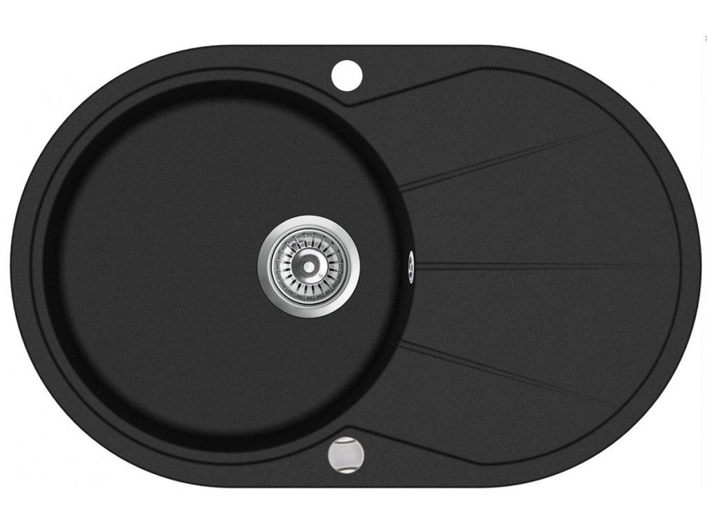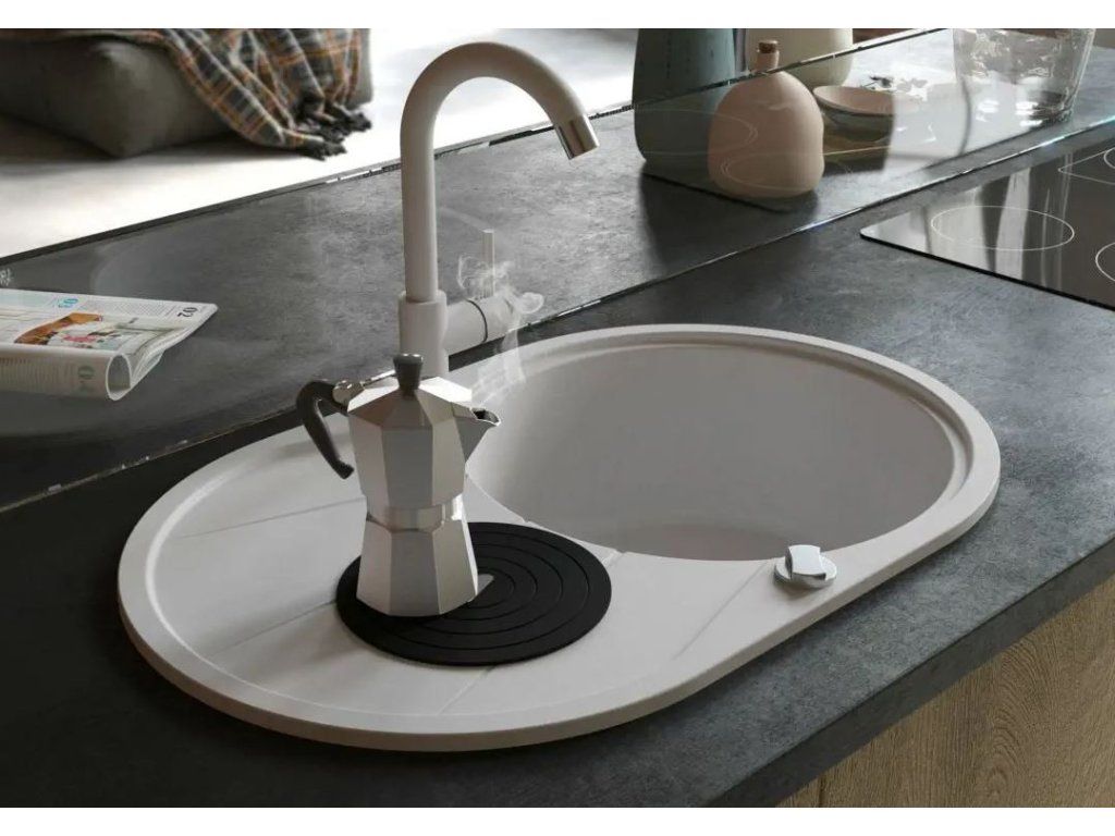 - kulatý granitový dřez s odkapem i excentrickým ovládáním