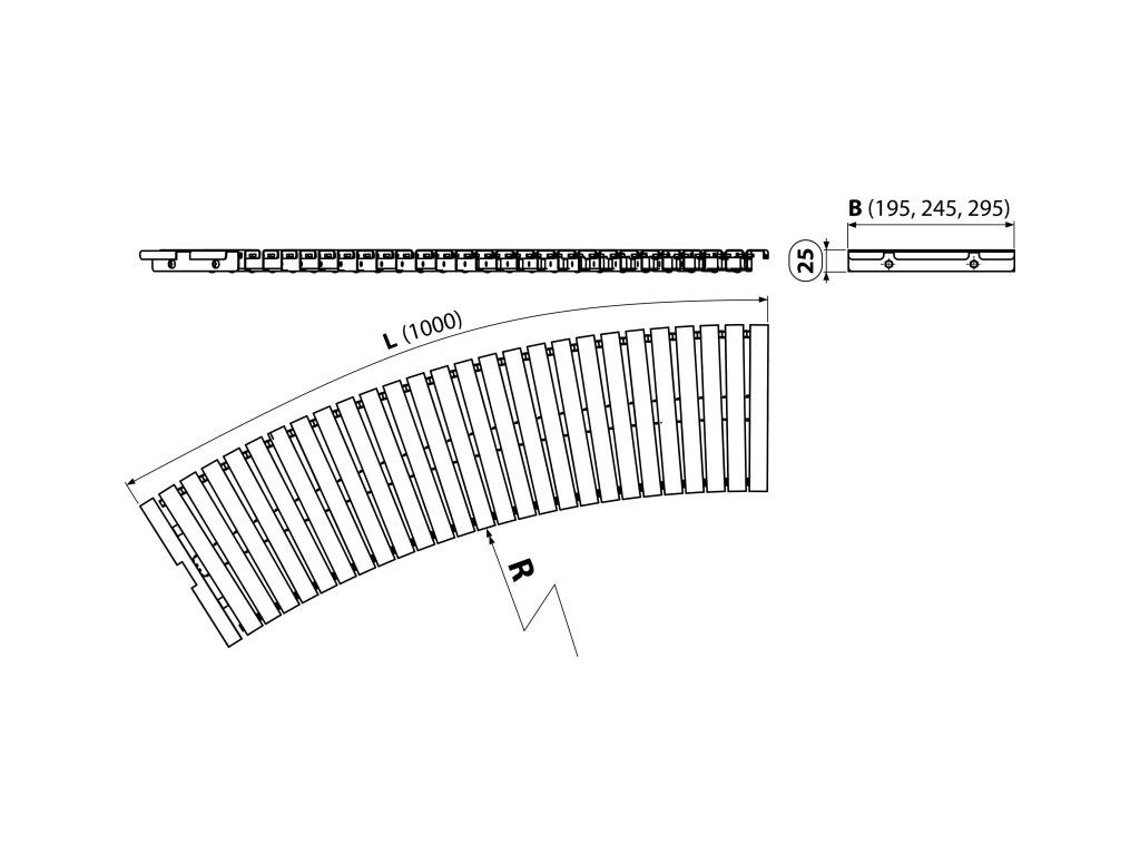 Bazénový rošt obloukový bez protiskluzu AP1-295-R-1000