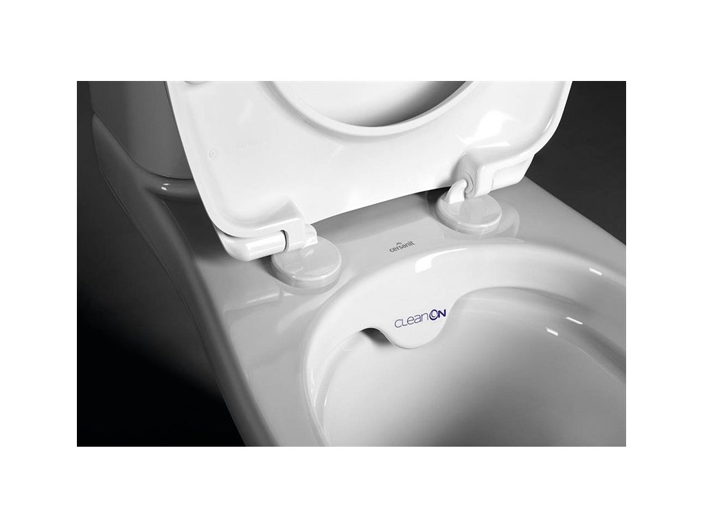 WC kombi stojící mísa ETIUDA NEW CLEANON je s horizontálním odpadem a přívodem vody z boku nádrže s funkcí splachování 3/6 l.
