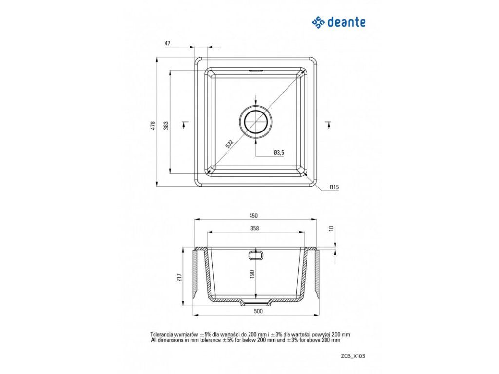 Precizní keramický jedno komorový dřez Deante Sabor 450 od velmi známého výrobce kuchyňských dřezů Deante. Firma Deante je na trhu více než 30 let, představuje záruku kvality. Výrobky značky Deante jsou tzv. ProEco, to znamená, že používají pro výrobu přírodní materiály jako je právě keramiky. Rovněž je firma šetrná k životnímu prostředí, využívá Eco obaly.