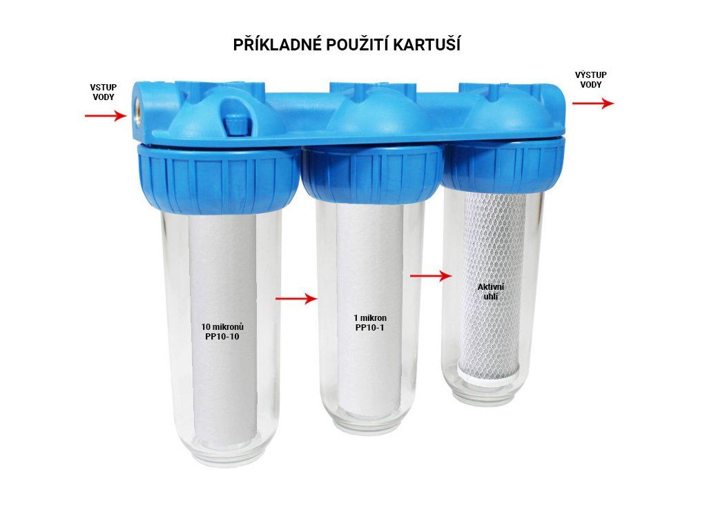- odstraňuje z vody chlór, organické sloučeniny a suspenze