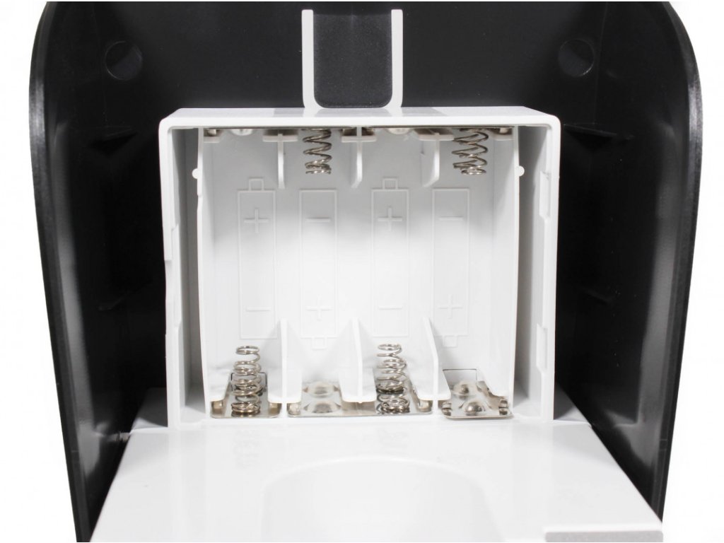 Dávkovač je možné napájet pomocí 8 kusů tužkových baterií AA. Při použití kvalitních alkalických baterií vydrží v běžném provozu dávkovač fungovat déle než půl roku.