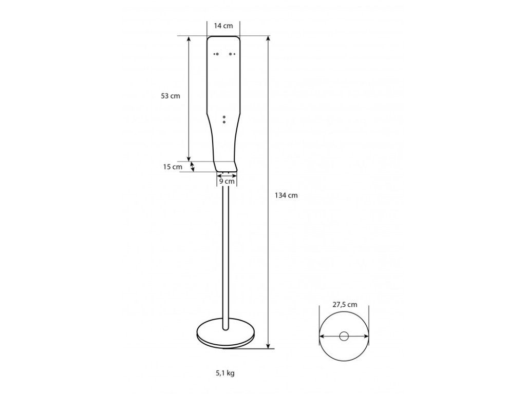 Stojan je určený pro dávkovače gelové a tekuté dezinfekce Donner. Po vyvrtání nových otvorů však může posloužit i jako univerzální stojan pro jakýkoliv dávkovač dezinfekce.