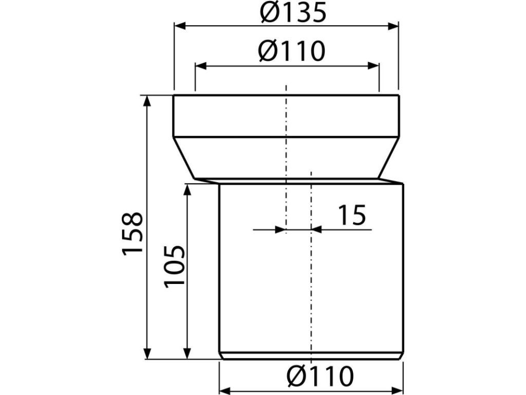 Dopojení k volně stojícímu WC, excentrické 15 mm, DN 110, délka 158 mm, PP, bílé A92