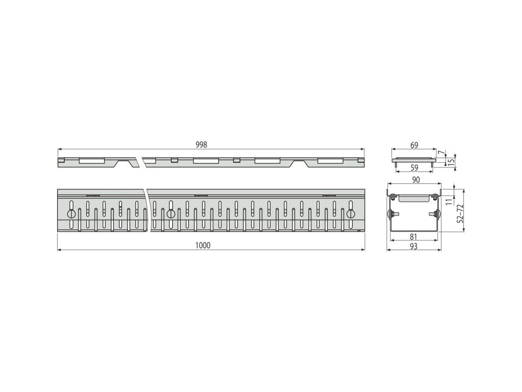 Výškově nastavitelné tělo žlabu 60–80 mm