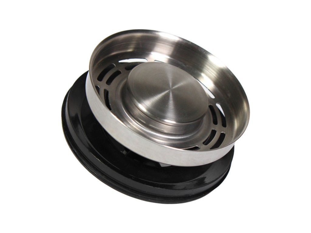 Dvoupolohová speciální zátka s ochrannou funkcí sítka. Vytváří funkční celek, který velmi zpříjemní používání dřezu pro běžné účely. Zátka se vytáhne jen na průběh drcení, zbytek času zabraňuje nechtěnému propadnutí lžiček, gumiček, mikrotenových sáčků apod.