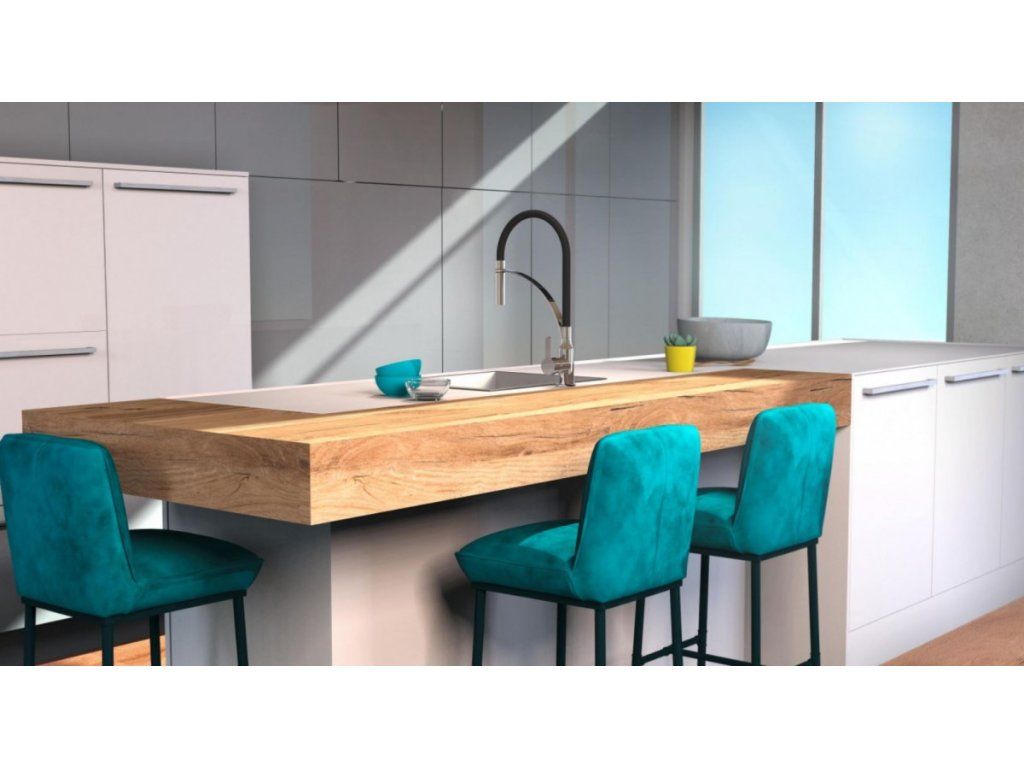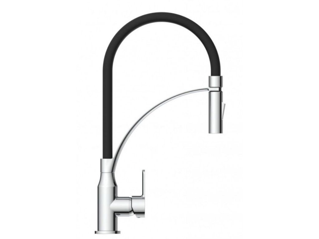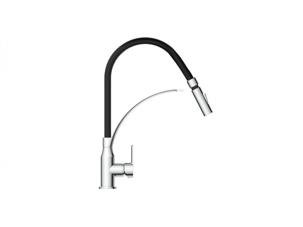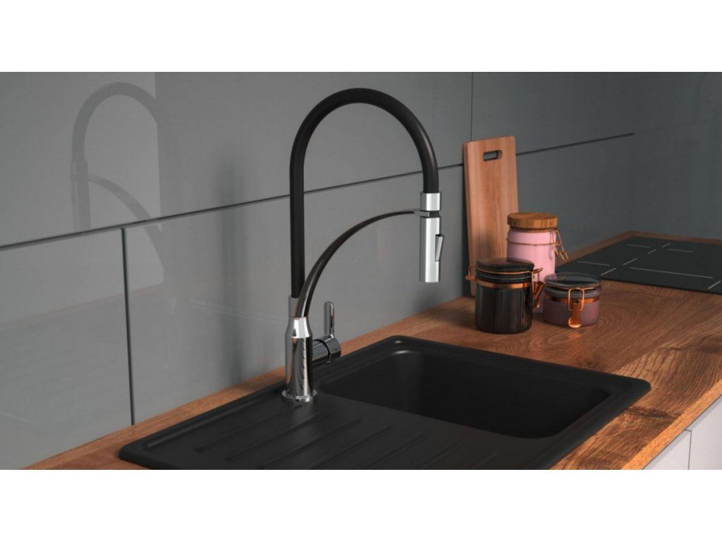 Díky kombinaci otočného výtoku a ohebné hlavici je baterie ideální volbou pro dvojité dřezy. Kuchyňská baterie disponuje funkcí studeného startu tj. ve středové poloze páky teče pouze studená voda.