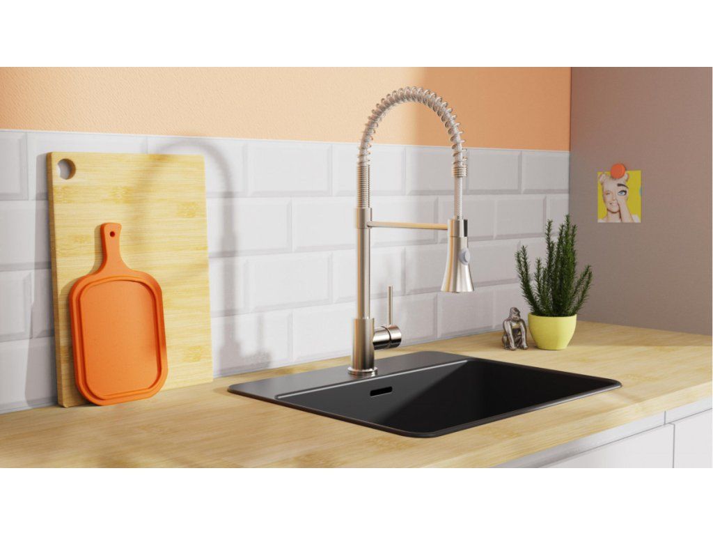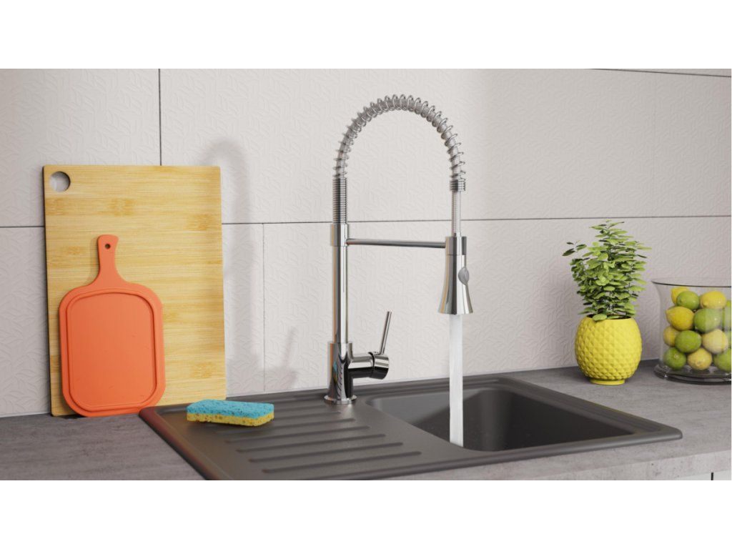 - kuchyňská baterie s otočným výtokem o 360°C, ideální pro dvoj dřezy