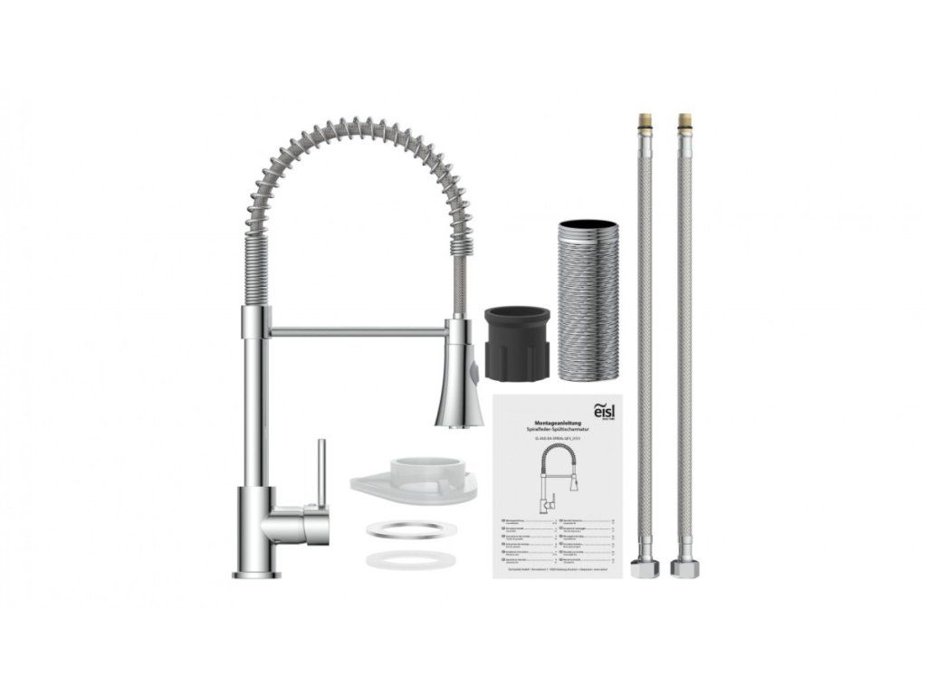 Leon je oblouková spirálová baterie od německého dodavatele Eisl s tradicí od roku 1980. Otočná baterie o 360°, se skvěle uplatní nejen u větších dvou-dřezů. Hlavice baterie je vybavena sprškou, ovládání sprchy je umístěno přímo na hlavici pro jednoduché použití. Výsuvná sprška je umístěna na flexibilní hadici. Můžete tak snadno opláchnout stěny dřezu nebo napouštět větší nádoby vodou. Kuchyňská baterie Eisl Leon je vybavená kvalitní keramickou kartuší. Vysoká kvalita dílenského zpracování zaručuje dlouhou životnost a odolnost.