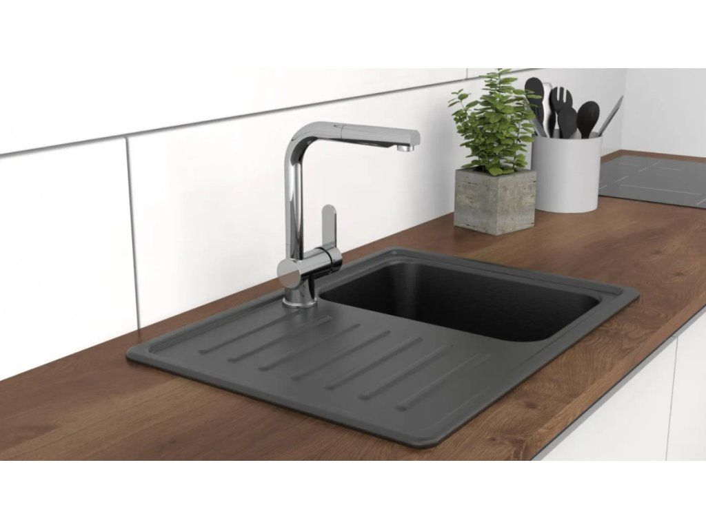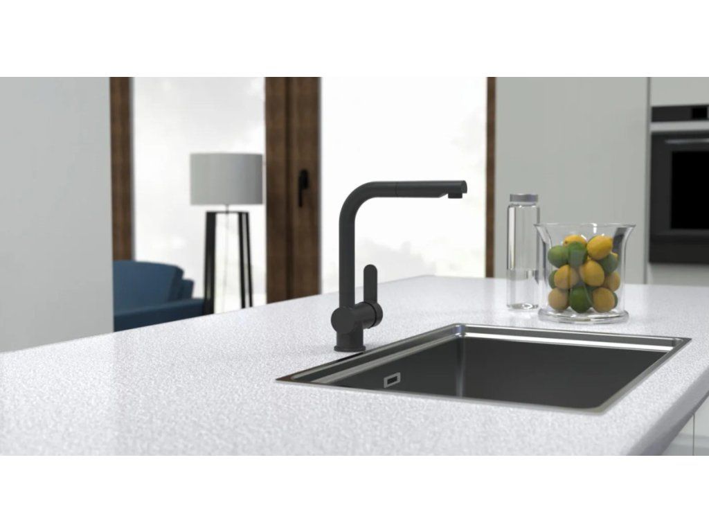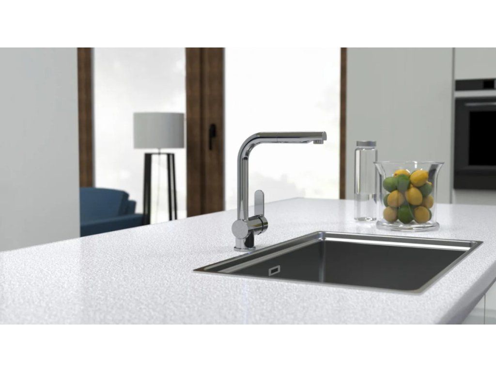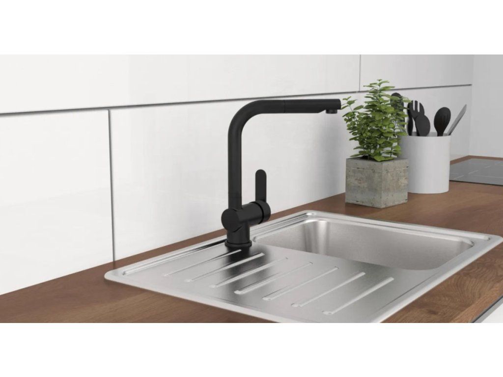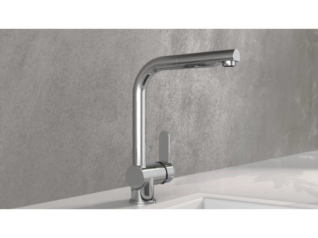 - kuchyňská baterie s otočným výtokem o 360°C, ideální pro dvoj dřezy