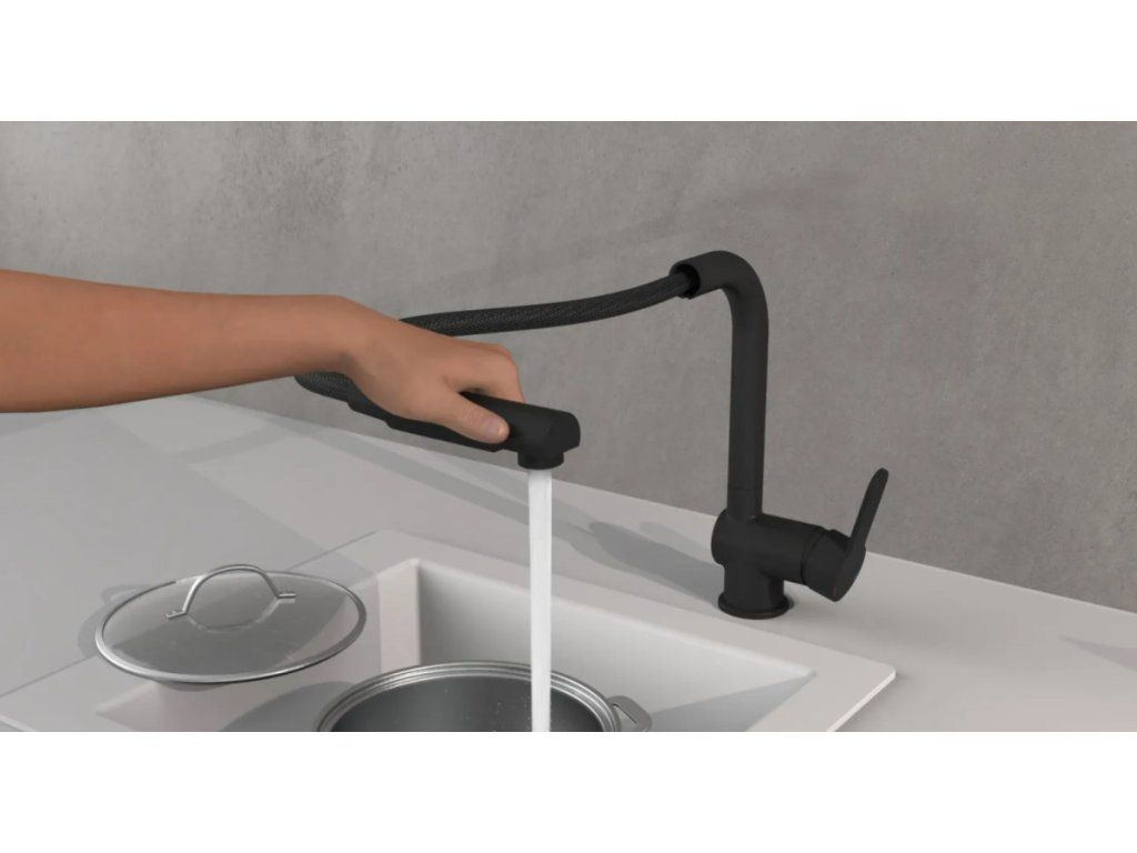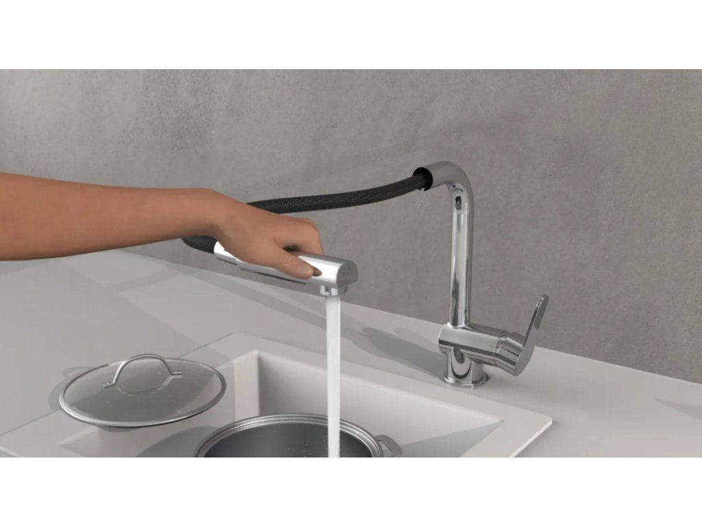 - kuchyňská baterie s otočným výtokem o 360°C, ideální pro dvoj dřezy