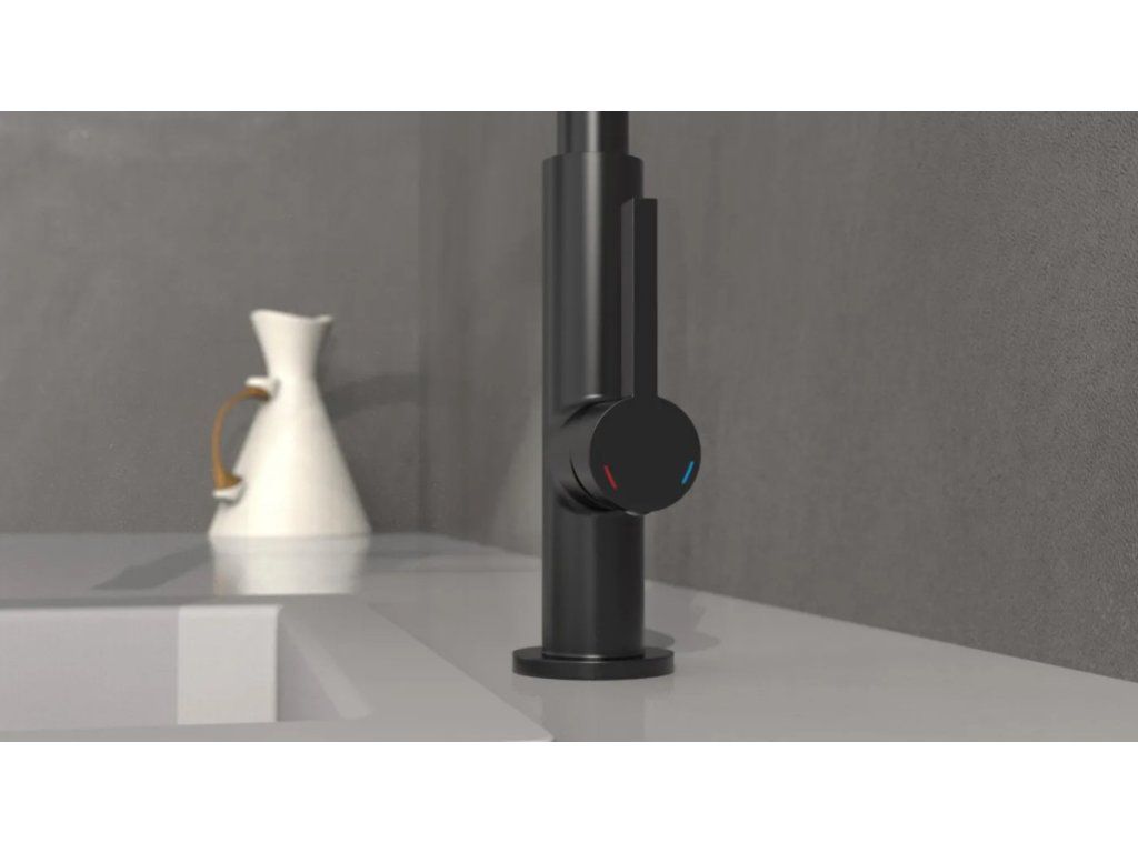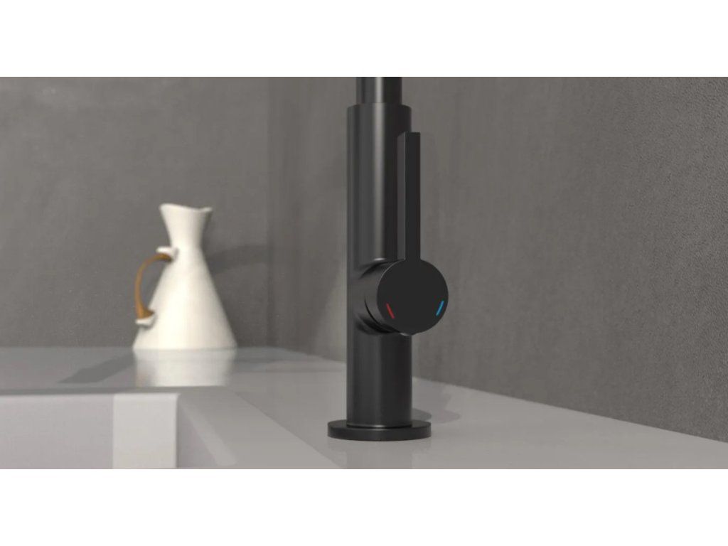 Baterie Miami představuje úspěšné spojení designu a funkce. Vysoce kvalitní výtok se spirálovou pružinou z nerezové oceli s rozprašovačem na nádobí. Černá kuchyňská baterie s výsuvným, dvoucestně nastavitelným sprejem na nádobí pro flexibilní použití. Baterie je vybavena inovativním magnetickým upevněním pro výtok a drží jej ve své poloze.