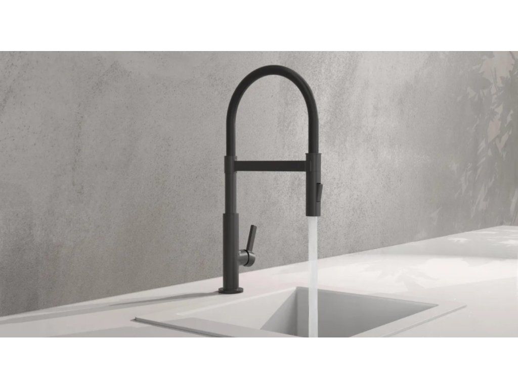 Baterie Miami představuje úspěšné spojení designu a funkce. Vysoce kvalitní výtok se spirálovou pružinou z nerezové oceli s rozprašovačem na nádobí. Černá kuchyňská baterie s výsuvným, dvoucestně nastavitelným sprejem na nádobí pro flexibilní použití. Baterie je vybavena inovativním magnetickým upevněním pro výtok a drží jej ve své poloze.