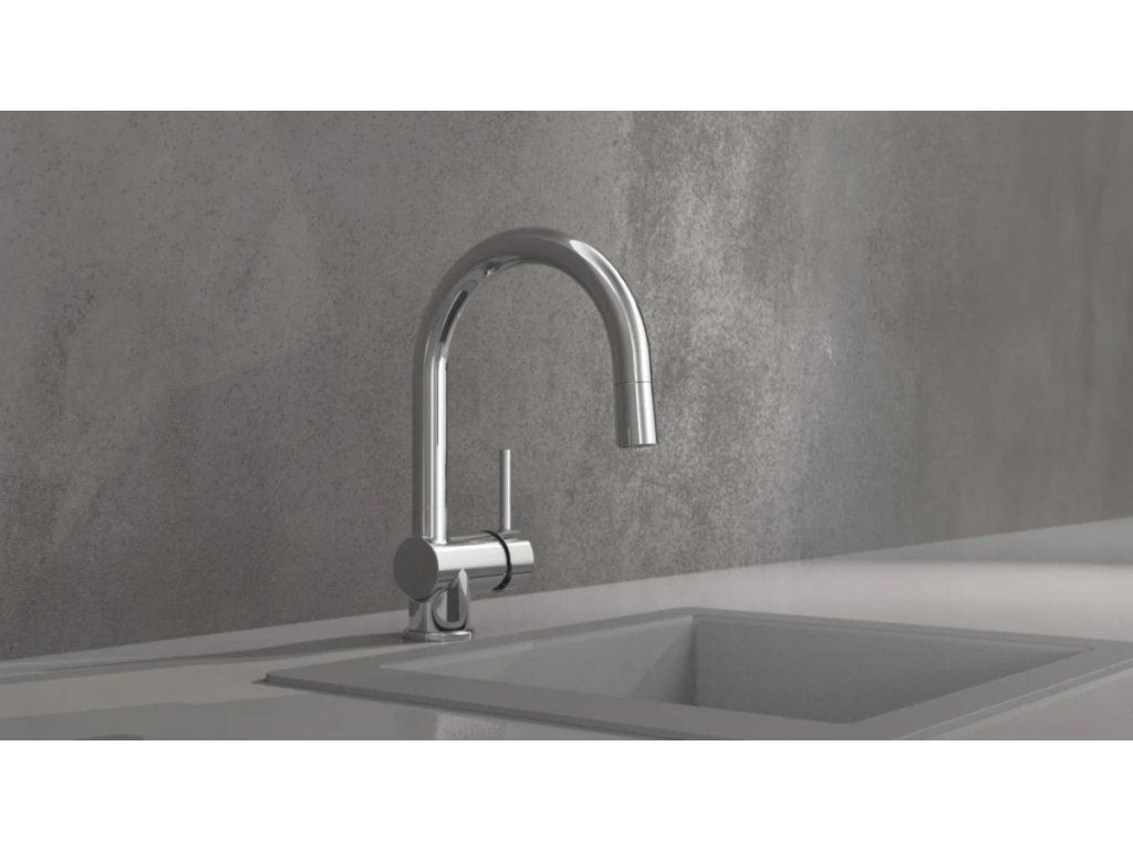 Kuchyňská baterie s teplotně řízenou změnou barvy LED minimalizuje riziko opaření. Udržitelná kuchyňská baterie s funkcí Eco-Click pro úsporu vody až 50 %. Jednopáková baterie s energeticky úspornou funkcí studeného startu - když je páka ve střední poloze, přitéká pouze studená voda.