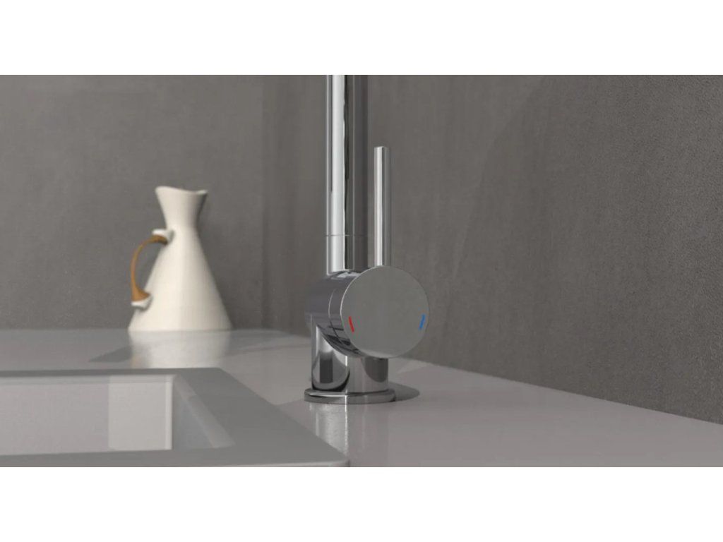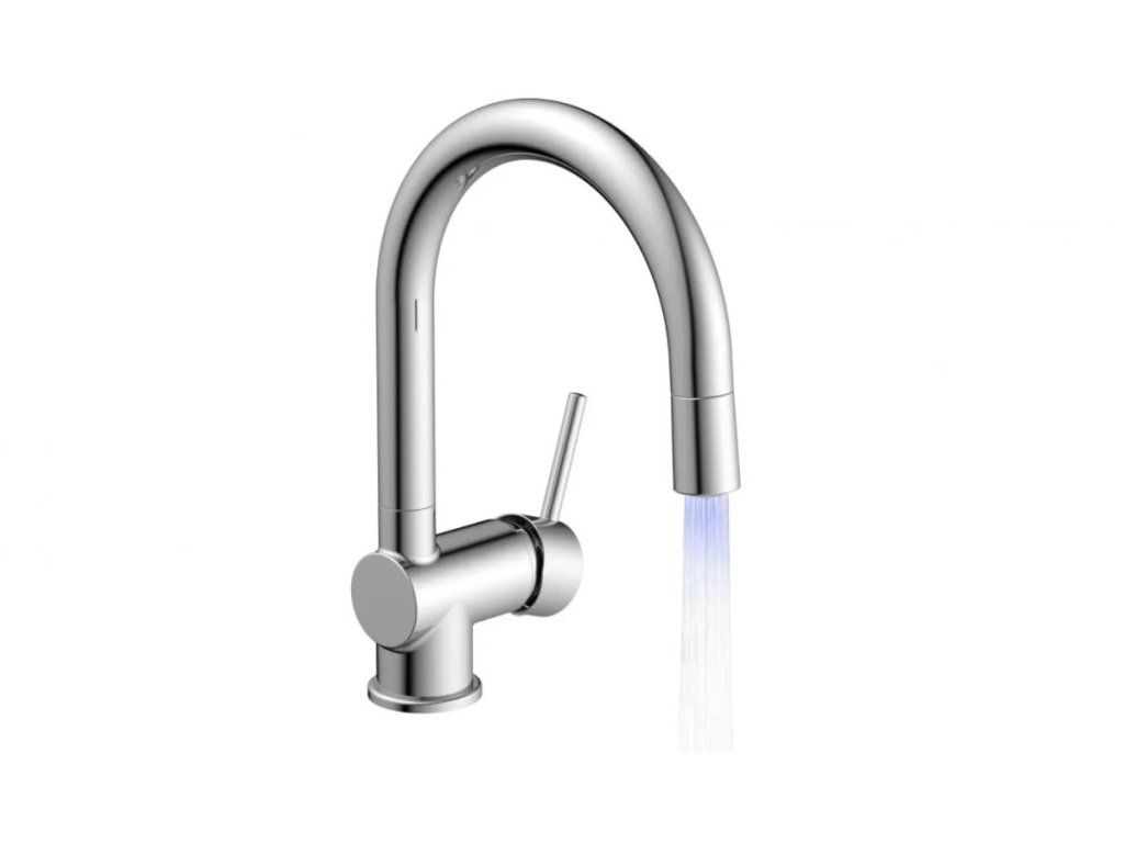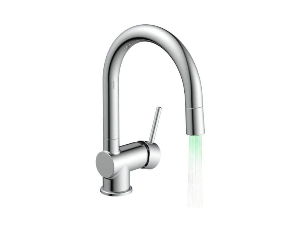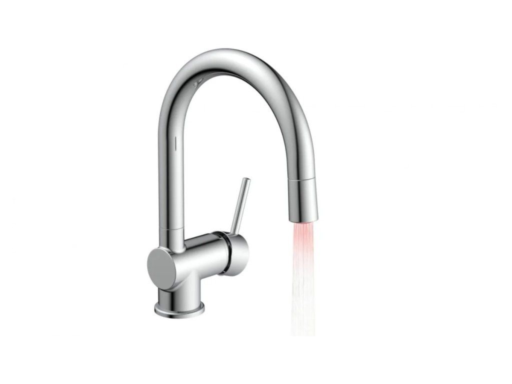 Kuchyňská baterie Eisl Stella LED s velmi působivým barevným LED osvětlením ozvláštní vaši kuchyň svou jedinečností! V baterii je integrované osvětlení, které mění barvu vodního proudu v závislosti na teplotě vody na modrou, zelenou a červenou.