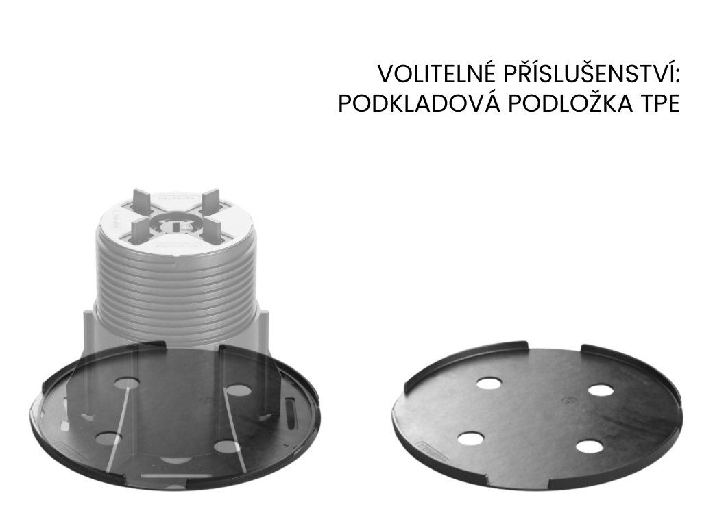 Výškově stavitelná podložka pod dlažbu NEW MAXI NM4 v rozmezí 90 - 160 mm Podložky pro dlažbu NEW MAXI je možné regulovat pomocí speciálního vyrovnávacího klíče, aniž by se muselo zasahovat do položeného povrchu. Klíčové vlastnosti podložek NEW MAXI: | Výškově nastavitelná | Podložku pod dlažbu NM4 je možné plynule výškově nastavit v rozmezí 90 – 160 mm. Kompletní řada podložek NEW MAXI je výškově stavitelná v rozmezí 15mm až 700mm. | Rychlá, snadná a ekonomická instalace | Instalace terasy na stavitelné terče je rychlé a snadné a tím pádem ho zvládne každý sám s minimem nástrojů, díky tomu ušetří čas a peníze. Na vyžádání Vám zpracujeme zdarma profesionální kladečský plán terasy. Pokud si budete přát, terasu přijedeme zaměřit. | Vysoká nosnost | Nosnost každé jednotlivé podložky na dlažbu je až 2000 kg. Díky vysoké nosnosti jsou podložky NEW MAXI ideálním řešením pro velkoformátové venkovní dlažby keramické i betonové. Keramická dlažba ideálně odDoplňkové parametry