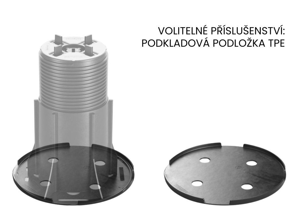 Výškově stavitelná podložka pod dlažbu NEW MAXI NM5 v rozmezí 150 - 270 mm Podložky pro dlažbu NEW MAXI je možné regulovat pomocí speciálního vyrovnávacího klíče, aniž by se muselo zasahovat do položeného povrchu. Klíčové vlastnosti podložek NEW MAXI: | Výškově nastavitelná | Podložku pod dlažbu NM5 je možné plynule výškově nastavit v rozmezí 150 – 270 mm. Kompletní řada podložek NEW MAXI je výškově stavitelná v rozmezí 15mm až 700mm. | Rychlá, snadná a ekonomická instalace | Instalace terasy na stavitelné terče je rychlé a snadné a tím pádem ho zvládne každý sám s minimem nástrojů, díky tomu ušetří čas a peníze. Na vyžádání Vám zpracujeme zdarma profesionální kladečský plán terasy. Pokud si budete přát, terasu přijedeme zaměřit. | Vysoká nosnost | Nosnost každé jednotlivé podložky na dlažbu je až 2000 kg. Díky vysoké nosnosti jsou podložky NEW MAXI ideálním řešením pro velkoformátové venkovní dlažby keramické i betonové. Keramická dlažba ideálně odDoplňkové parametry