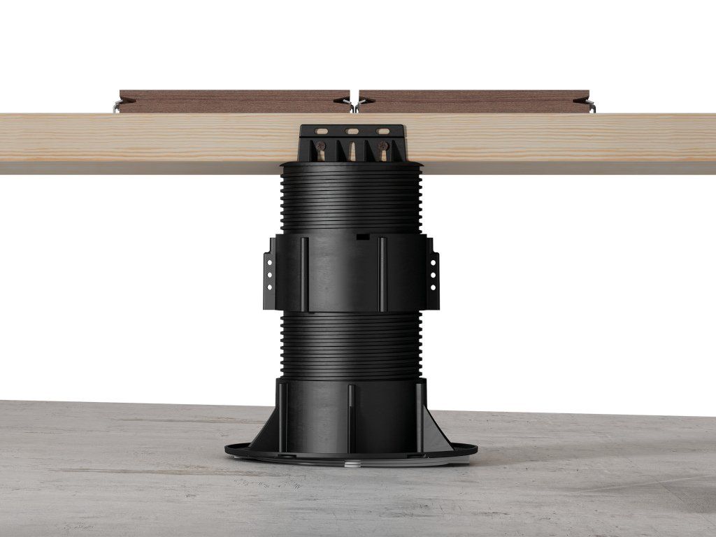 Rektifikační podložka pod dřevěná i WPC terasová prkna a rošt NEW MAXI Wood NMW0, výškově nastavitelná v rozmezí 15 - 25 mm Ideální podložka pro dřevěné terasy a WPC dřevoplastové terasy Terasové podložky New Maxi Wood vynikají speciální otočnou hlavu, která je opatřena opěrnou destičkou pro snadné připevnění všech typů terasových nosníků (hliník, dřevo nebo WPC - dřevoplast). Boční připevnění k terasovému nosníku vrutem, umožňuje regulaci výšky podložky i po spojení podložky s nosníkem nebo roštem. Klíčové vlastnosti podložek NEW MAXI Wood: | Výškově nastavitelná | Podložku pod terasová prkna a rošt NMW0 je možné plynule výškově nastavit v rozmezí 15 – 25 mm. Kompletní řada podložek New Maxi Wood je výškově stavitelná v rozmezí 15mm až 700mm. | Rychlá, snadná a ekonomická instalace | Instalace terasy na stavitelné terče pod dřevěnou terasu je rychlé a snadné, díky tomu ušetříte čas a peníze. Dřevěnou terasu můžete postavit svépomocí s minimem nástrojů. AbychomDoplňkové parametry
