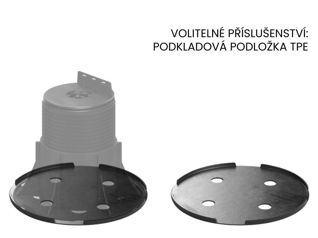 Rektifikační podložka pod dřevěná i WPC terasová prkna a rošt NEW MAXI Wood NMW4, výškově nastavitelná v rozmezí 90 - 160 mm Ideální podložka pro dřevěné terasy a WPC dřevoplastové terasy Terasové podložky New Maxi Wood vynikají speciální otočnou hlavu, která je opatřena opěrnou destičkou pro snadné připevnění všech typů terasových nosníků (hliník, dřevo nebo WPC - dřevoplast). Boční připevnění k terasovému nosníku vrutem, umožňuje regulaci výšky podložky i po spojení podložky s nosníkem nebo roštem. Klíčové vlastnosti podložek NEW MAXI Wood: | Výškově nastavitelná | Podložku pod terasová prkna a rošt NMW4 je možné plynule výškově nastavit v rozmezí 90 – 160 mm. Kompletní řada podložek New Maxi Wood je výškově stavitelná v rozmezí 15mm až 700mm. | Rychlá, snadná a ekonomická instalace | Instalace terasy na stavitelné terče pod dřevěnou terasu je rychlé a snadné, díky tomu ušetříte čas a peníze. Dřevěnou terasu můžete postavit svépomocí s minimem nástrojů.Doplňkové parametry