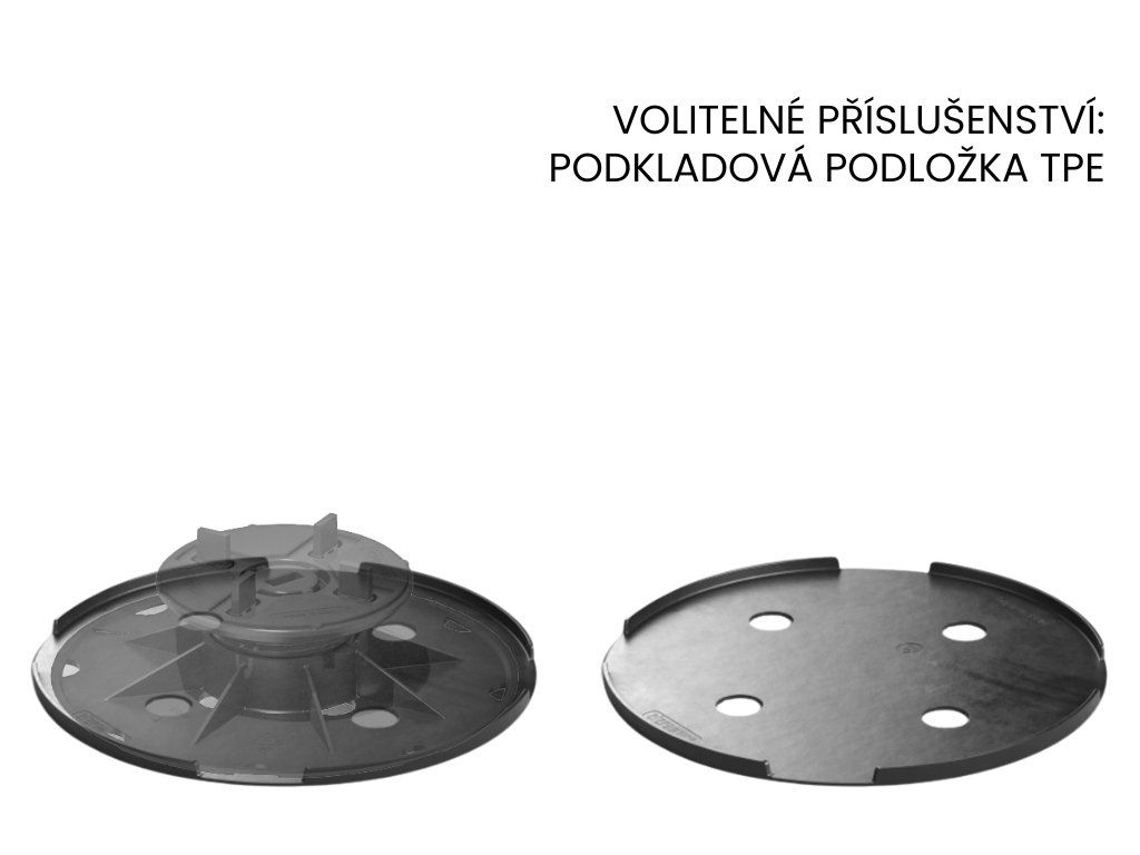 Výškově stavitelná podložka pod dlažbu NERO BN2 v rozmezí 45 - 60 mm Podložky pro dlažbu NERO je možné regulovat pomocí speciálního vyrovnávacího klíče, aniž by se muselo zasahovat do položeného povrchu. Klíčové vlastnosti podložek NERO: | Výškově nastavitelná | Podložku pod dlažbu BN2 je možné plynule výškově nastavit v rozmezí 45 – 60 mm. Kompletní řada podložek NERO je výškově stavitelná v rozmezí 37mm až 307mm. | Automatická regulace sklonu až do 5% | Unikátní patentovaná konstrukce výkyvné hlavy NERO, zajišťuje automatickou regulaci sklonu až do 5% spádu podkladové vrstvy. Toto řešení zrychluje instalaci terasy a šetří Váš čas. | Rychlá, snadná a ekonomická instalace | Instalace terasy na stavitelné terče je rychlé a snadné a tím pádem ho zvládne každý sám s minimem nástrojů, díky tomu ušetří čas a peníze. Na vyžádání Vám zpracujeme zdarma profesionální kladečský plán terasy. Pokud si budete přát, terasu přijedeme zaměřit. | VysokáDoplňkové parametry