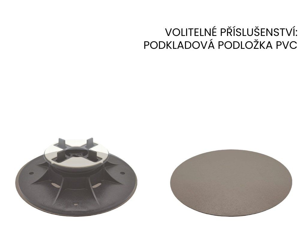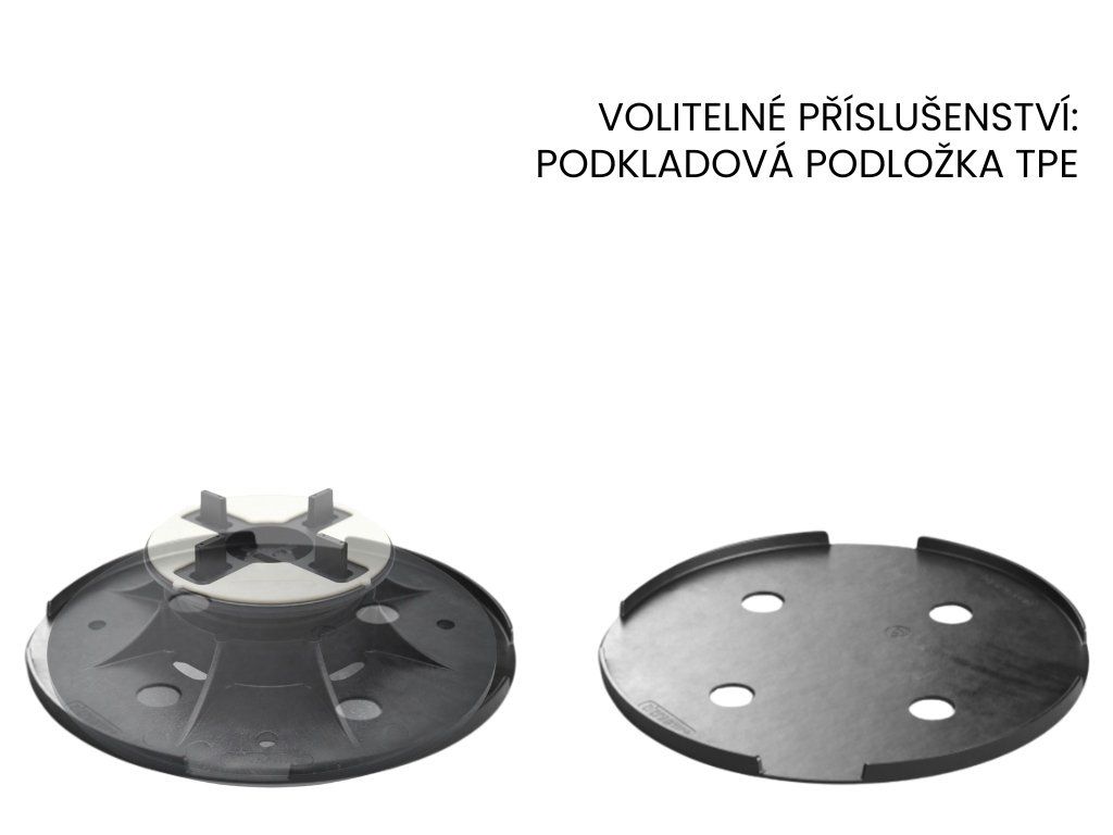Rektifikační podložka pod dlažbu ETERNO SE1 se samovyrovnávací hlavou, nastavitelná v rozmezí 37,5 - 50 mm Podložky pro dlažbu ETERNO je možné regulovat pomocí speciálního vyrovnávacího klíče, aniž by se muselo zasahovat do položeného povrchu. Klíčové vlastnosti podložek ETERNO SE: | Výškově nastavitelná | Podložku pod dlažbu SE1 je možné plynule výškově nastavit v rozmezí 37,5 – 50 mm. Kompletní řada podložek ETERNO je výškově stavitelná v rozmezí 28mm až 550mm. | Automatická regulace sklonu až do 5% | Unikátní patentovaná konstrukce výkyvné hlavy SE, zajišťuje automatickou regulaci sklonu až do 5% spádu podkladové vrstvy. Toto řešení zrychluje instalaci terasy a šetří Váš čas. | Rychlá, snadná a ekonomická instalace | Instalace terasy na stavitelné terče je rychlé a snadné a tím pádem ho zvládne každý sám s minimem nástrojů, díky tomu ušetří čas a peníze. Na vyžádání Vám zpracujeme zdarma profesionální kladečský plán terasy. Pokud si budete přát,Doplňkové parametry