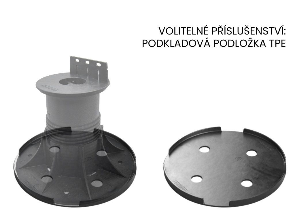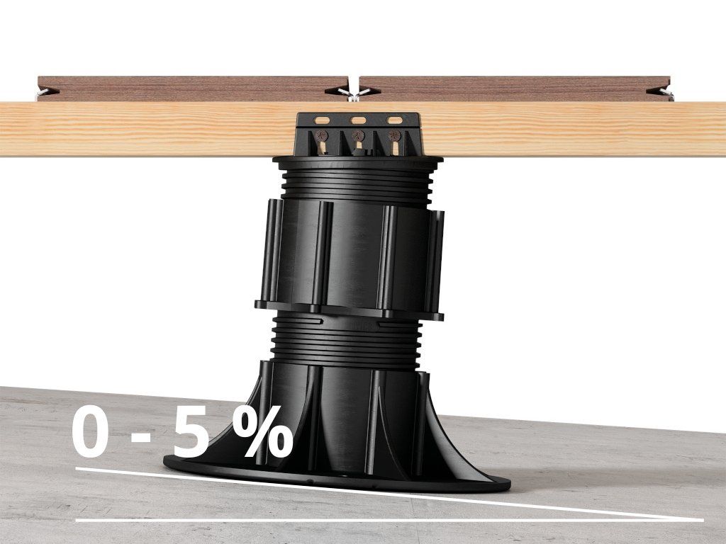 Rektifikační podložka pod dřevěná i WPC terasová prkna a rošt ETERNO SEW4 se samonivelační hlavou, nastavitelná v rozmezí 120 - 170 mm Nejpropracovanější terče pro dřevěné terasy a WPC dřevoplastové terasy Podložky pod terasová prkna a dřevěnou terasu Eterno SE Wood vynikají patentovanou samonivelační otočnou hlavu, která je opatřena opěrnou destičkou pro snadné připevnění všech typů terasových nosníků (hliník, dřevo nebo WPC - dřevoplast). Samovyrovnávací hlava zajišťuje automatickou regulaci sklonu až do 5%. Boční připevnění k terasovému nosníku vruty, umožňuje regulaci výšky podložky i po spojení podložky s nosníkem nebo roštem. Klíčové vlastnosti podložek ETERNO SE Wood: | Výškově nastavitelná | Podložku pod terasová prkna SEW4 je možné plynule výškově nastavit v rozmezí 120 - 170 mm. Kompletní řada podložek ETERNO SE Wood je výškově stavitelná v rozmezí 28mm až 550mm. | Automatická regulace sklonu až do 5% | Unikátní patentovaná konstrukce výkyvné hlavy SEDoplňkové parametry