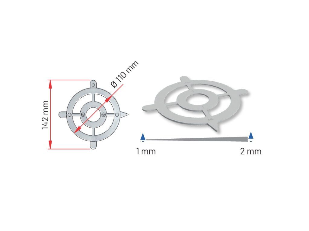 Spádová podložka pro snadné dorovnání 1% spádu. Doporučujeme použít maximálně 2 ks na jednu podložku. Použití s podložkami BASIC a NEW MAXI. Průměr 110 mm.Doplňkové parametry