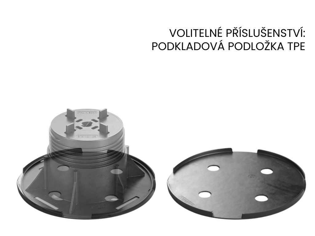 Výškově stavitelná podložka pod dlažbu NEW BASIC NB3 v rozmezí 60 - 100 mm Hlava podložky je spojena se závitem. Výšku podložek pro dlažbu NEW BASIC, lze nastavit před pokládkou dlažby pomocí vyrovnávacího klíče. Klíčové vlastnosti podložek NEW BASIC: | Výškově nastavitelná | Podložku pod dlažbu NB3 je možné plynule výškově nastavit v rozmezí 60 – 100 mm. Kompletní řada podložek NEW BASIC je výškově stavitelná v rozmezí 15mm až 700mm. | Rychlá, snadná a ekonomická instalace | Instalace terasy na stavitelné terče je rychlé a snadné a tím pádem ho zvládne každý sám s minimem nástrojů, díky tomu ušetří čas a peníze. Na vyžádání Vám zpracujeme zdarma profesionální kladečský plán terasy, pokud si budete přát terasu přijedeme zaměřit. | Vysoká nosnost | Nosnost každé jednotlivé podložky na dlažbu je až 1000 kg. Díky vysoké nosnosti jsou podložky NEW BASIC ideálním řešením pro velkoformátové venkovní dlažby keramické i betonové. Keramická dlažba ideálně odDoplňkové parametry