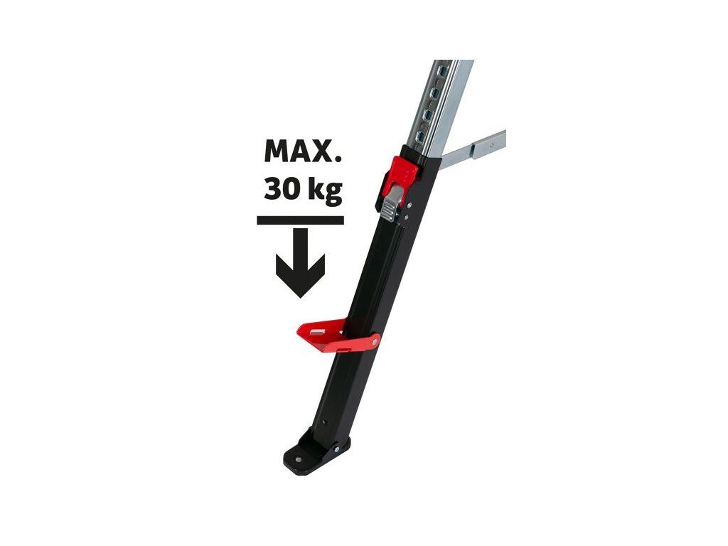 - nosná plocha s protikluznou vrstvou, na jedné straně noh výklopné opěrky pro OSB desky, lamino, apod. s nosností 30 kg na jednu opěrku