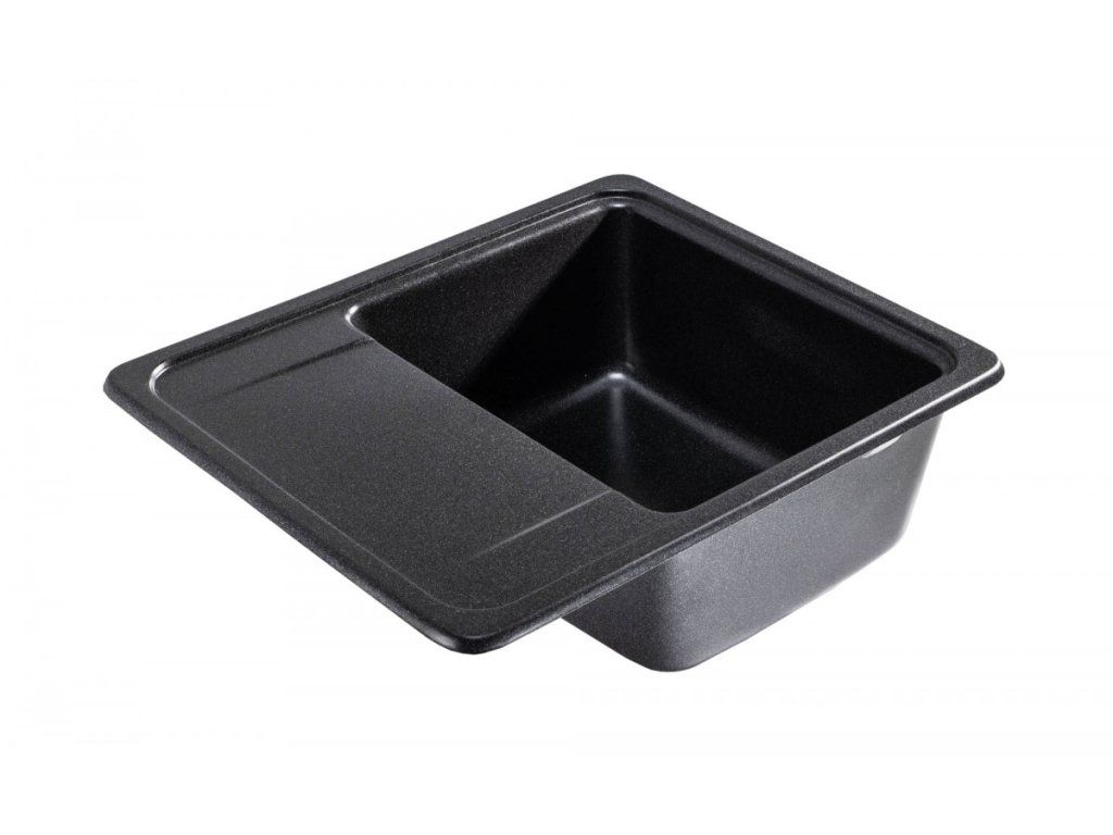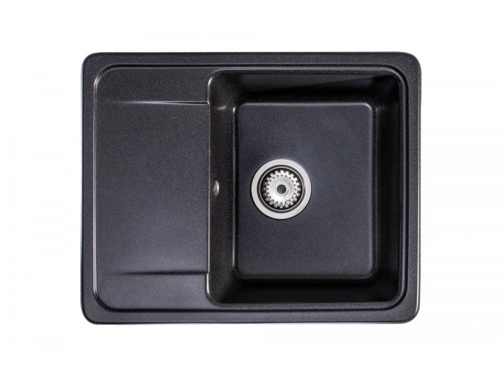 - žulový dřez z granitu v černé metalické barvě s krátkým odkapem
