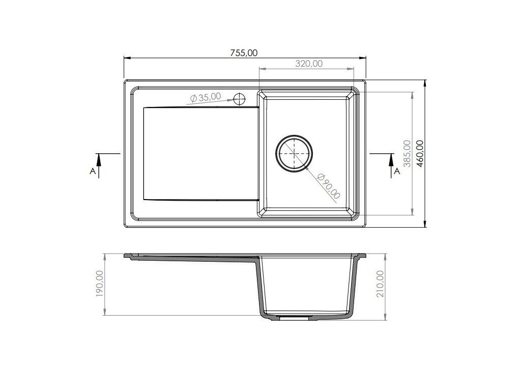 Kuchyňský dřez Cortes 755.0 disponuje prostornou vaničkou, kde pohodlně umyjete i objemné hrnce nebo pečící plechy. Odkapavací plocha je rovněž velmi prostorná, zde oceníte hladký povrch bez drážek. Odkapavač je mírně zkosený, voda jednoduše steče do dřezu. Zaoblené hrany dřezu usnadní čištění a celkovou péči o dřez.