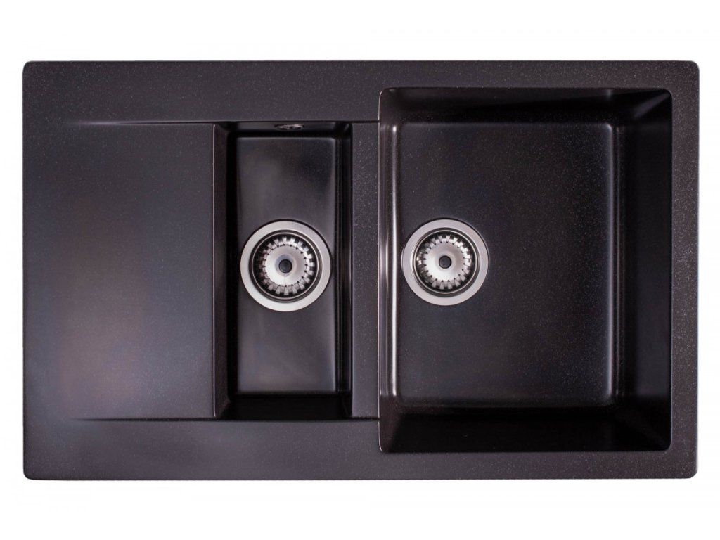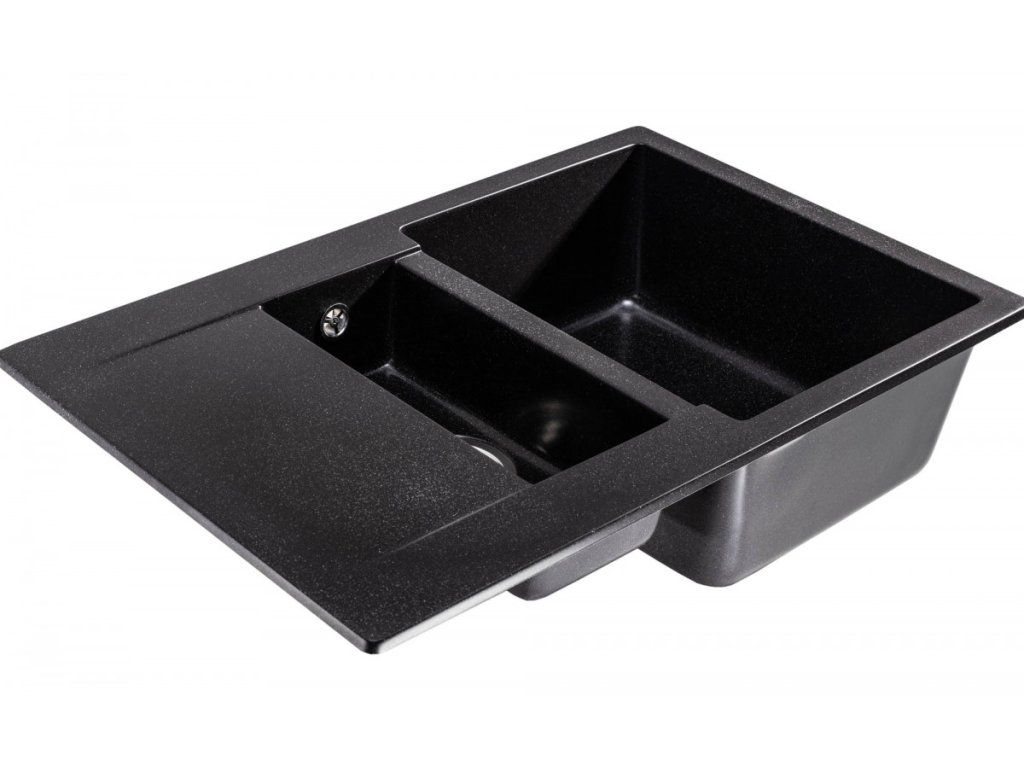 - žulový kuchyňský dřez v černé barvě s odkapem a druhou menší vaničkou