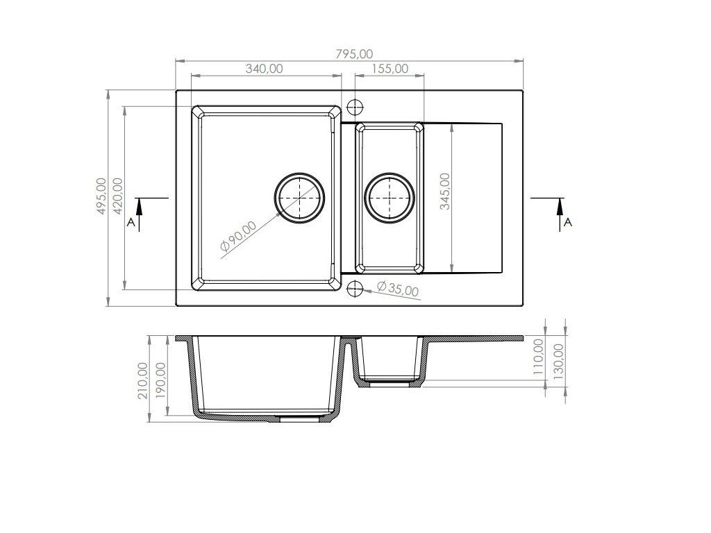 Dřez Fabero 795.15 splní veškerá vaše očekávání. Dostatečně hluboká (19 cm) hlavní komora dřezu umožňuje pohodlné mytí a oplachování talířů i hrnců. Pro speciální úkony slouží druhá menší komora, ve které můžete snadno opláchnout ovoce a zeleninu nebo nechat rozmrazit maso. Zároveň dřez disponuje odkládací plochou, kde můžete dát osušit jednotlivé nádobí. Do dřezu je možno vyvrtat otvory pro instalaci kuchyňské baterie, nebo pro dávkovač saponátu popř. pro tlačítko k ovládání drtiče kuchyňského odpadu.