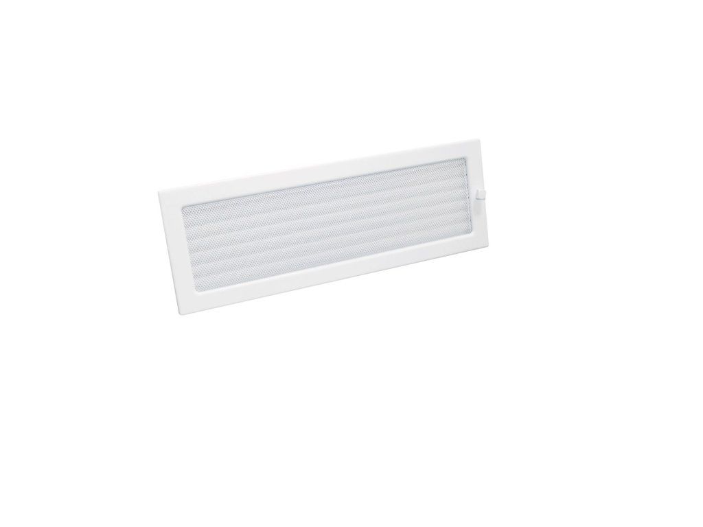 Použití: Použitelná v exteriéru i interiéru. Materiál: Lakovaná ocel Instalace: Rámeček zapracovat do stavebního otvoru, . Lakovaná krbová mřížka s rámečkem a síťovinou uzaviratelná 170x490 bílá.Doplňkové parametry