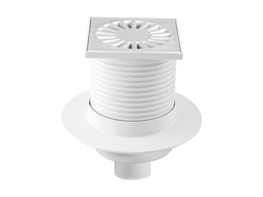 Použití: Pro svádění vod uvnitř budov. Přírubu vpusti lze použít pro napojení s hydroizolační fólií nebo stěrkou. Výškově . Podlahová vpusť spodní s přírubou PVS 100x100 PR/DN50 bílá ;.Doplňkové parametry
