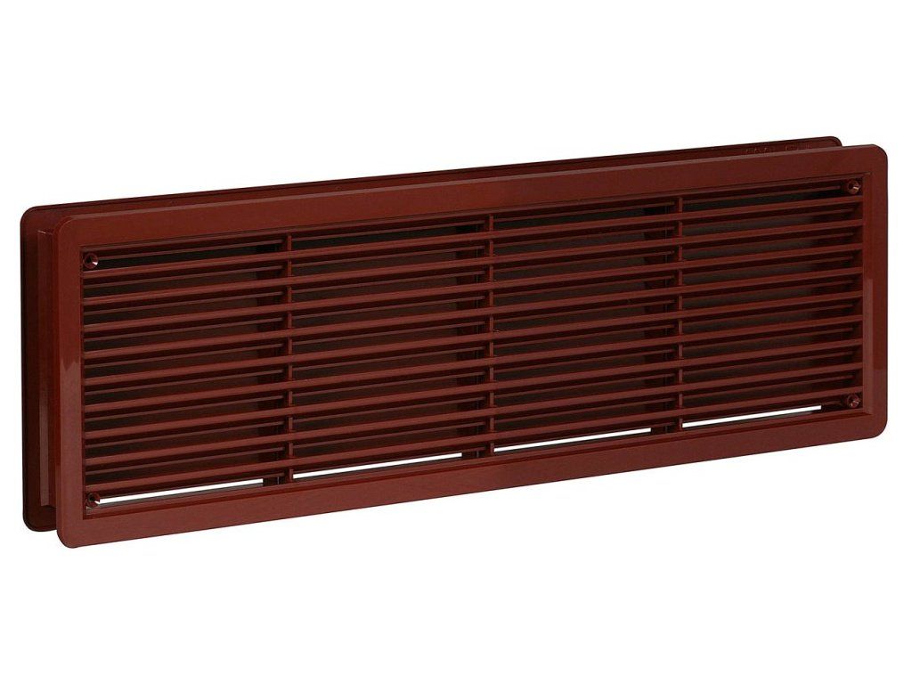 Použití: Použitelná v exteriéru i interiéru. Materiál: Plast ASA s vysokou odolností vůči UV záření.Instalace: Mřížky . Větrací mřížka dveřní 400x130 hnědá (balení 2ks).Doplňkové parametry