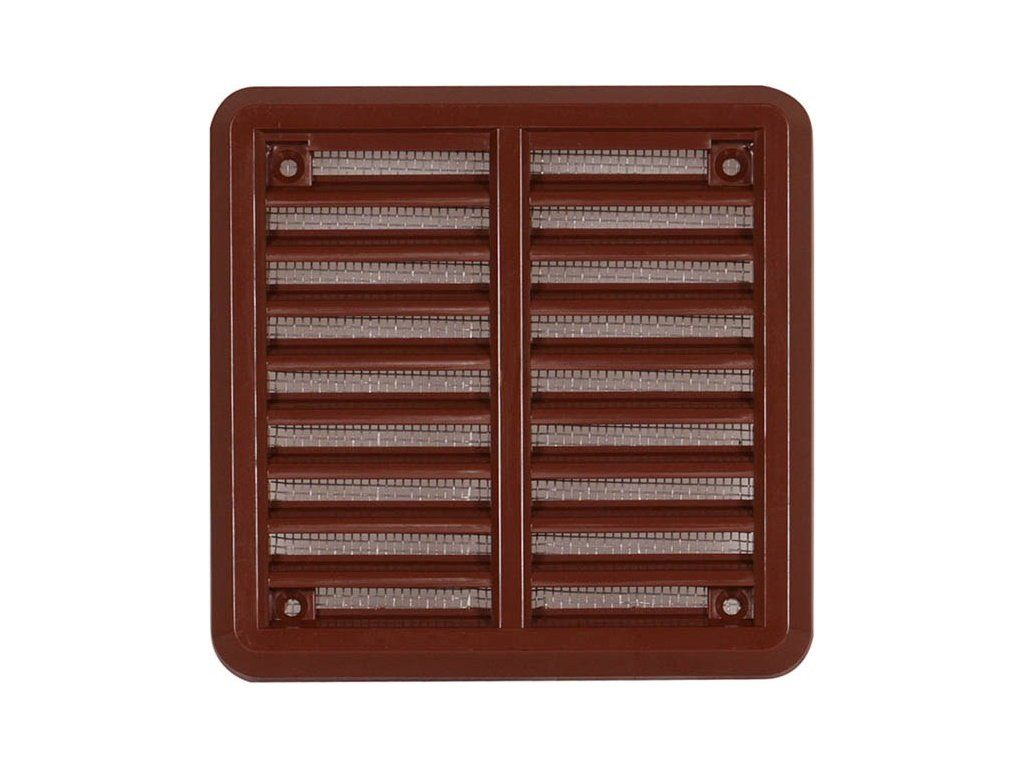Použití: Použitelná v exteriéru i interiéru. Na zadní straně síťovina proti mušině. Materiál: Plast ASA s vysokou odolností . Větrací mřížka se síťovinou - krytka 100x100 hnědá.Doplňkové parametry