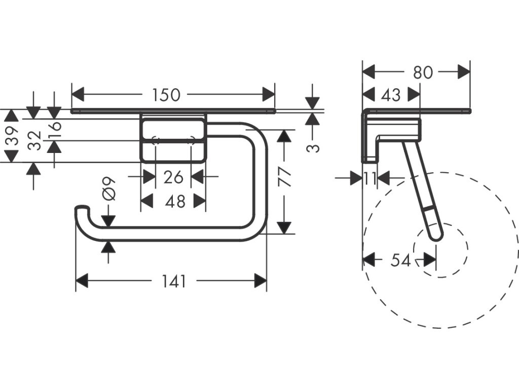 Držák na roli papíru hansgrohe s poličkou v matném černém provedení