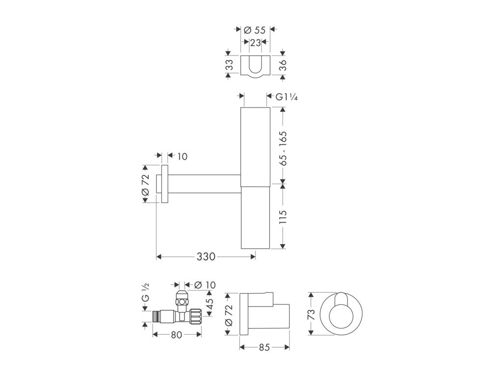 Hansgrohe chrom designový sifon flowstar sada 52120000• obsahuje: designový sifon 2 dva rohové ventily 2 krytky