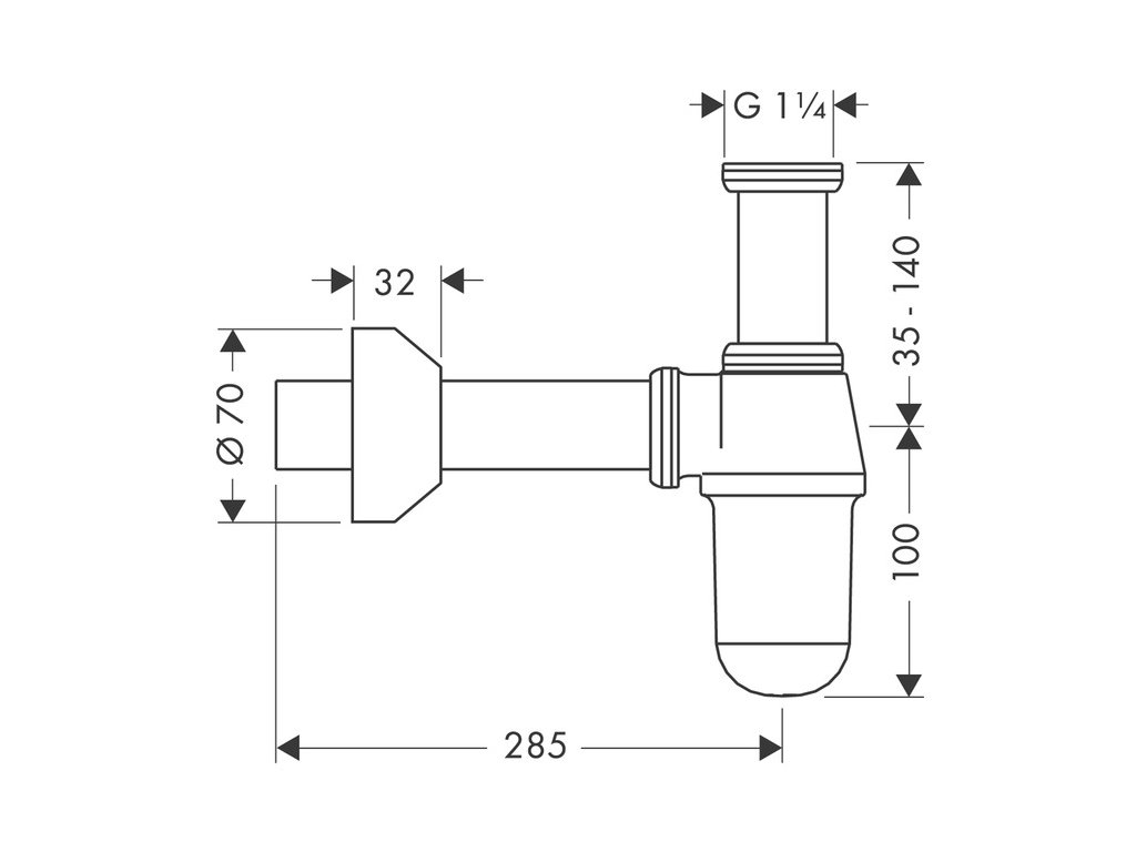 Hansgrohe chrom šálkový sifon se snadnou instalací 52010000• připojovací rozměr přítoku: G 11