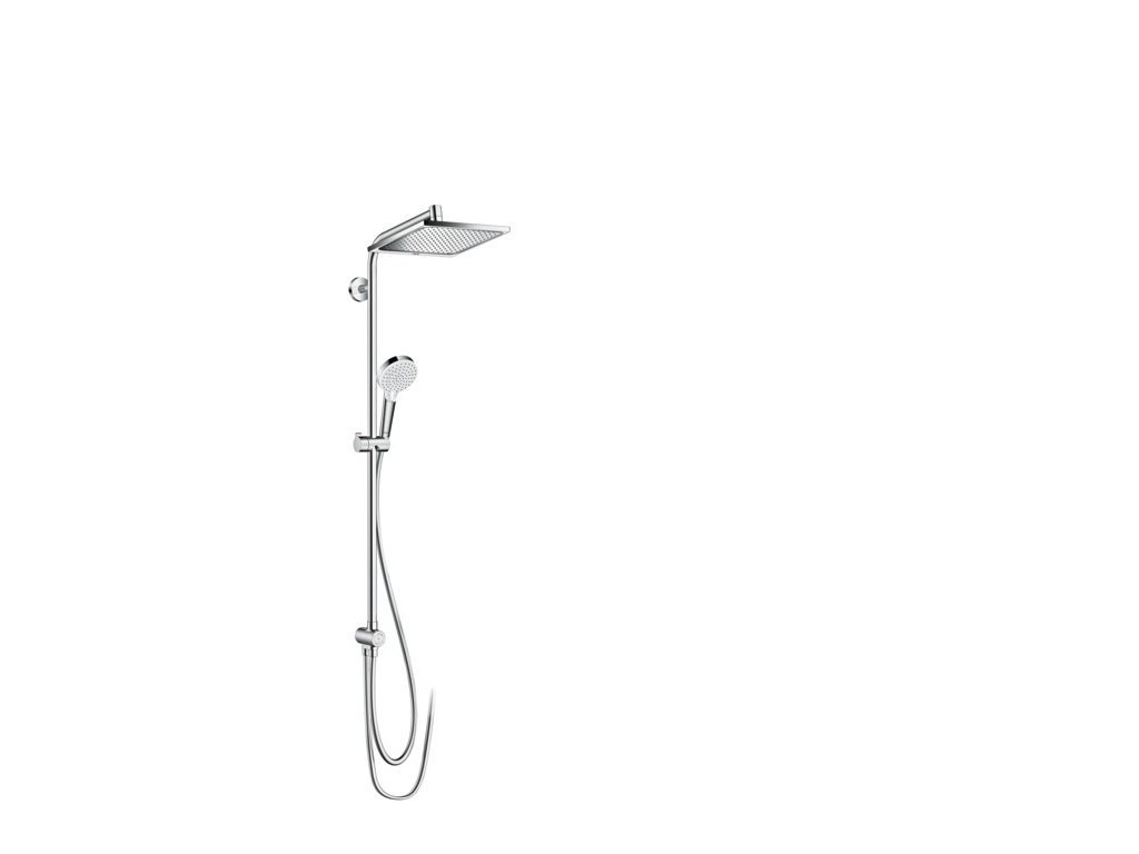 Nadčasová řeč tvarů sprchového systému s elegantní horní sprchou a ruční sprchou, která díky svému bílému disku vodních paprsků zajišťuje nápadné kontrasty, se harmonicky začlení do každého koupelnového prostředí.