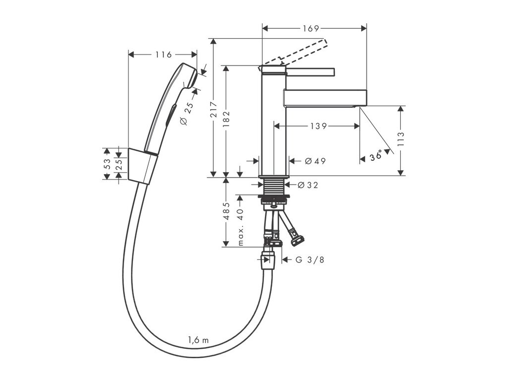 Hansgrohe Finoris chrom umyvadlová baterie 110 s ruční sprchou bidette a sprchovou hadicí 160 cm 76210000• obsahuje: páková umyvadlová baterie ruční sprcha Bidette sprchový držák sprchová hadice odtoková souprava