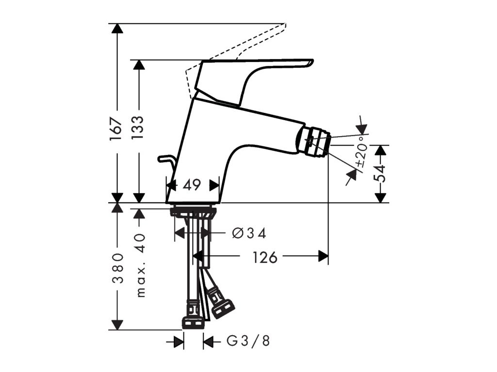 Hansgrohe Focus chrom bidetová baterie s odtokovou soupravou s táhlem 31920000• obsahuje: páková bidetová baterie odtoková souprava