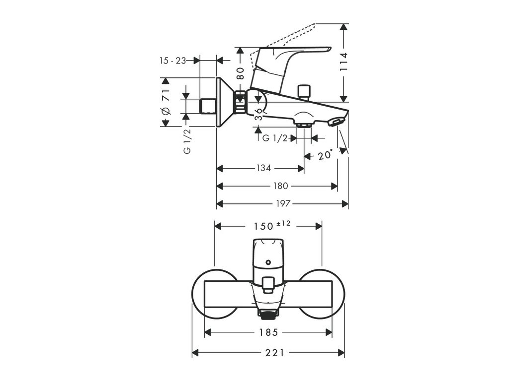 Hansgrohe Focus chrom vanová baterie na stěnu 31940000• výtok 180 mm