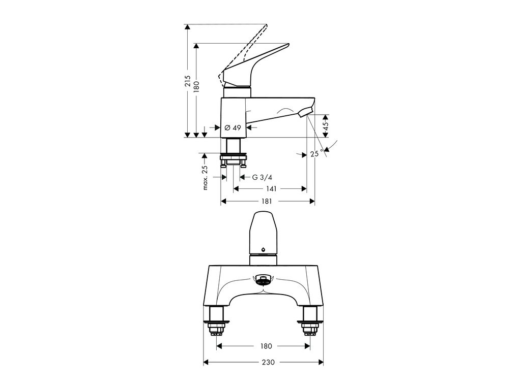 Hansgrohe Focus chrom dvouotvorová baterie na okraj vany 31523000• funkční od tlaku 002 MPa