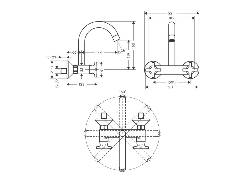 Hansgrohe Logis M32 chrom kuchyňská baterie se dvěma kohouty montáž na stěnu horní výtok 1jet 71286000• rozsah otáčení 360°
