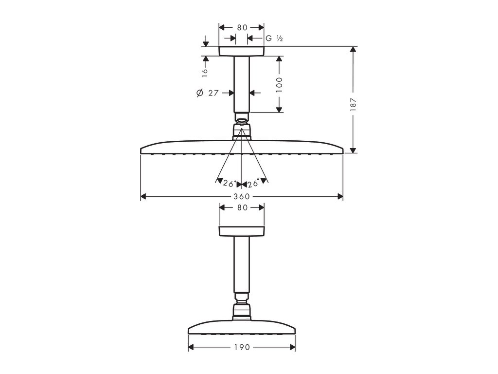Hansgrohe Raindance E chrom horní sprcha 360 1jet ecosmart 9 l/min s přívodem od stropu 26604000• obsahuje: horní sprcha přívod od stropu