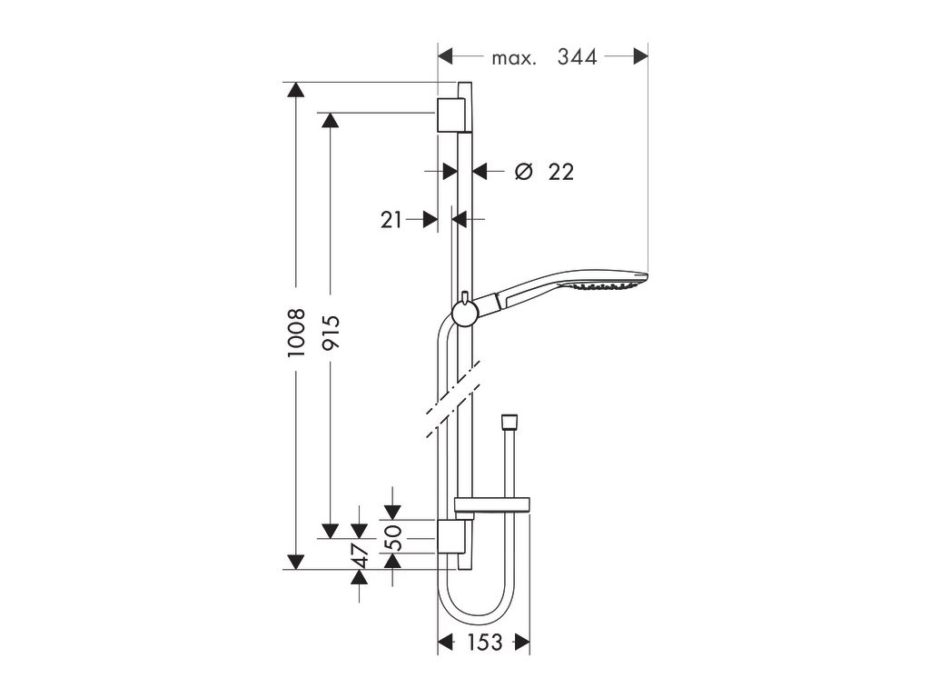 Hansgrohe Raindance Select S bílá/chrom 150 sprchová sada 3jet se sprchovou tyčí 90 cm a miskou na mýdlo 27803400• obsahuje: ruční sprcha, sprchová tyč, sprchová hadice, jezdec, miska na mýdlo