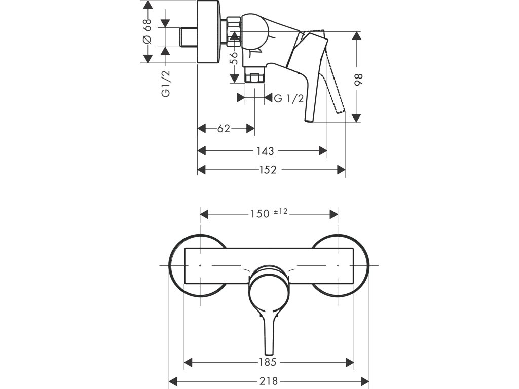 • rozteč středů: 150 mm ± 12 mm